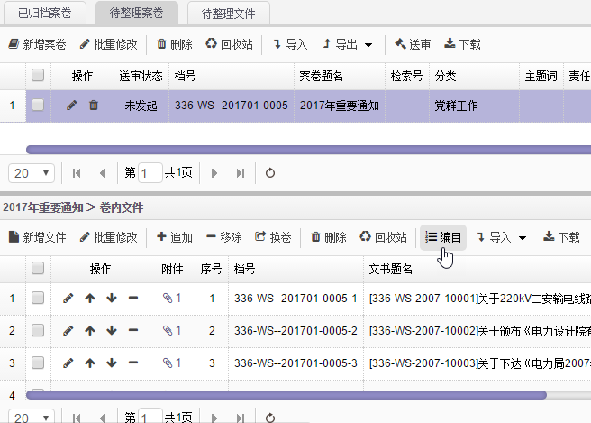 檔案采集歸集的數(shù)據(jù),在檔案庫整理中,檔案管理員可以手動調整、補充、修改、刪除等操作,并對檔案進行梳理后入庫。支持錄入零散文件信息,然后使用【組卷】或【組盒】操作將零散文件歸入案卷或檔案盒中,使無序信息有序化。支持自動編目、自動封面和批量導出,大大提高工作效率。
