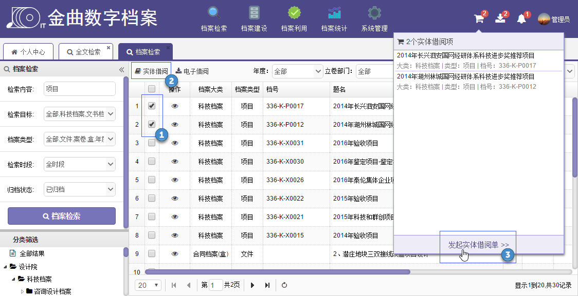 2、實物檔案查找不方便,借閱周期長,跨部門利用困難;