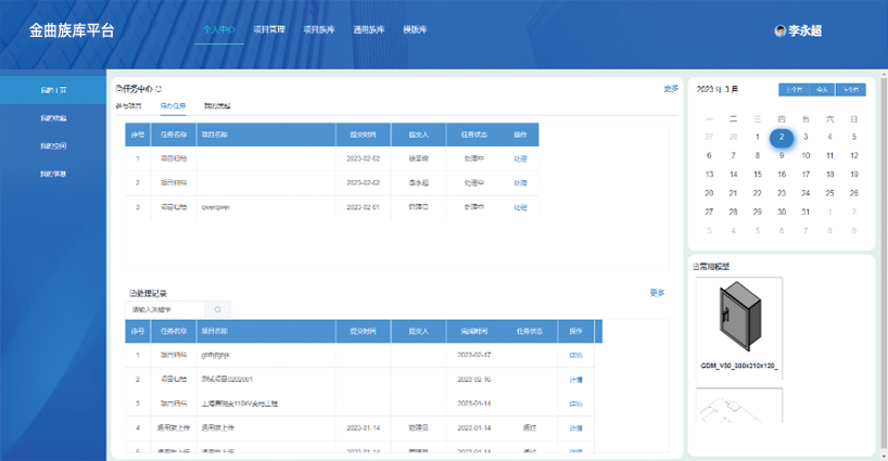 平臺具備完善的項目模型管理功能,可基于項目實現(xiàn)模型云儲存、云下載和項目審核及協(xié)同設(shè)計,對于項目可進(jìn)行整體歸檔,以便二次引用。