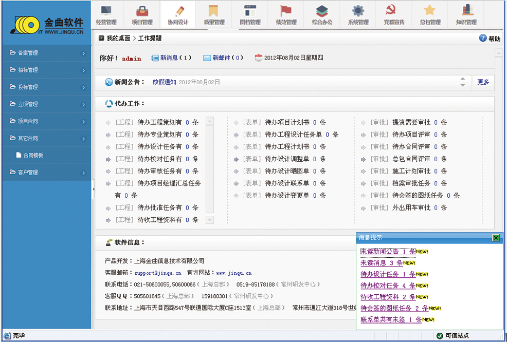 該功能模塊與項目管理模塊可一體化集成,提供一個項目內(nèi)部各專業(yè)、各人員的協(xié)同設(shè)計平臺。使項目各設(shè)計人員在設(shè)計過程中,共享資源,專業(yè)之間協(xié)同、專業(yè)內(nèi)部協(xié)作、設(shè)校審過程控制及過程文件版本管理。避免錯漏碰缺、提高設(shè)計效率和質(zhì)量。通過網(wǎng)絡(luò)信息協(xié)同平臺使圖紙的設(shè)計、校審、打印、歸檔都得到嚴格控制。各類管理人員可方便監(jiān)控相應(yīng)的工作進程,安排工作任務(wù)后,對當事人智能提示和催辦。